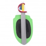 Zabaven komplet za male viteze: penasti meč in ščit v zeleni barvi za varne dvoboje in kostumske igre. Lahkoten material, varno igranje in idealna velikost za otroke zagotavljajo veliko akcije doma in na prostem.