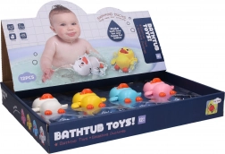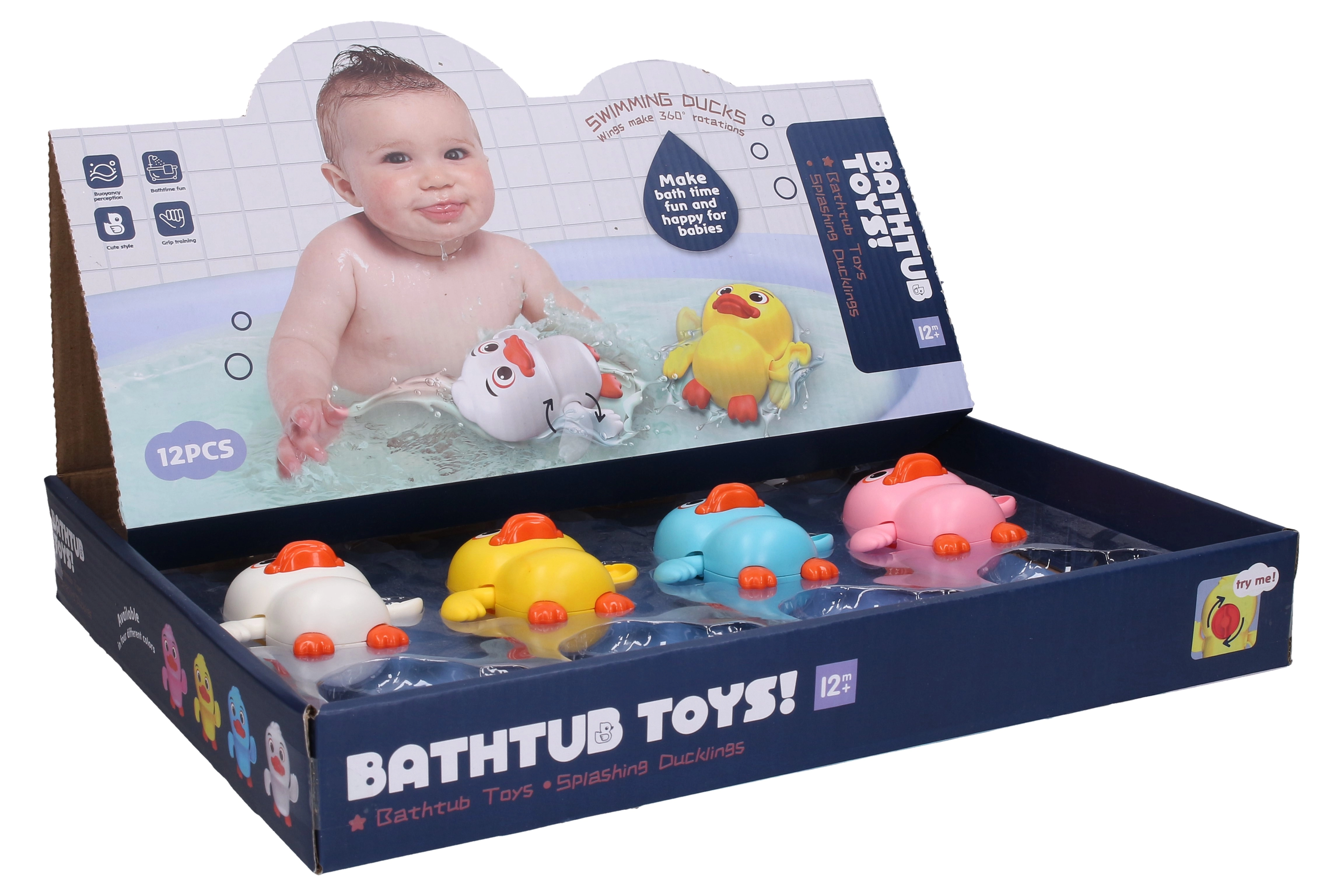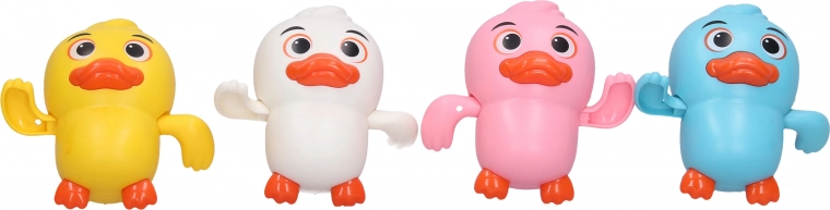 Popestrite kopanje z navijalno račkico, ki po zavrtju mehanizma pluje po vodi. Kompaktna velikost 9 cm se odlično prilega otroški roki in ponuja varno, preprosto ter veselo igro v kadi ali otroškem bazenčku.