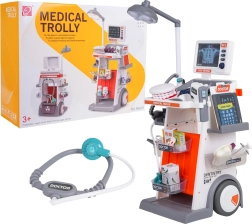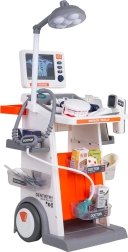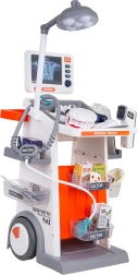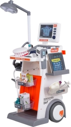 Ta bogato opremljen komplet združuje zdravniške, zobozdravstvene in očesne pripomočke v enem mobilnem vozičku. Velika kolesa in ročaj omogočajo enostavno premikanje, police in posodice pa sprejmejo vse dodatke. Otroci bodo uživali v realistični igri zahvaljujoč svetlobnim in zvočnim učinkom – svetilki, panelu s prikazi RTG, osvetljenemu termometru in zobnemu ogledalcu ter zvoku srca v stetoskopu.