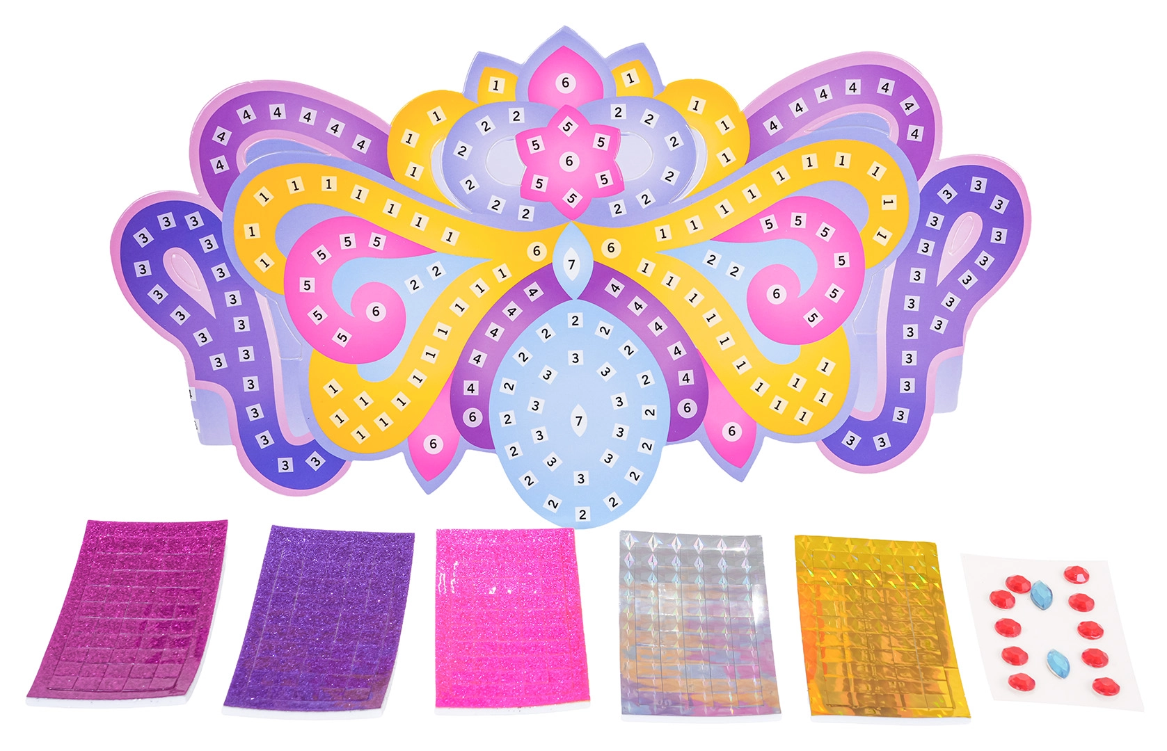 Spremenite vsako igro v kraljevo slavje. S tem kompletom si otroci izdelajo edinstveno tiaro po svojem okusu – le lepijo nalepke po številkah in jo okrasijo s kamenčki. Odlično kot darilo za malo princeso ali za ustvarjalno popoldne.
