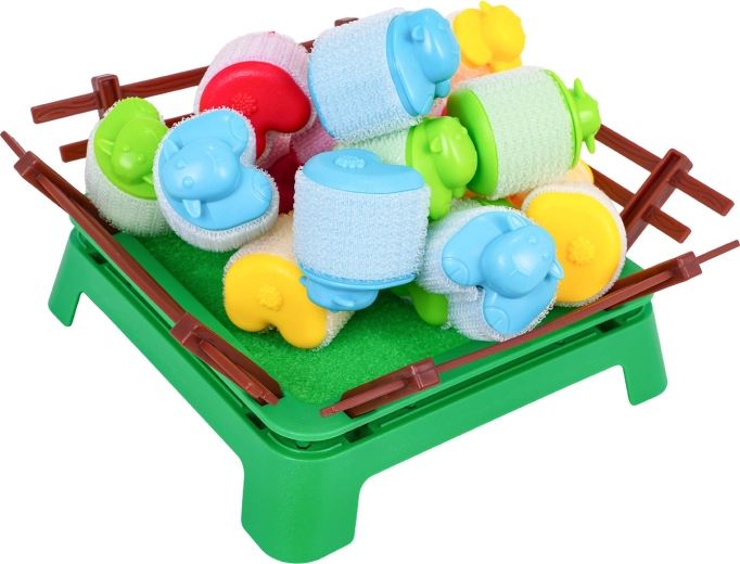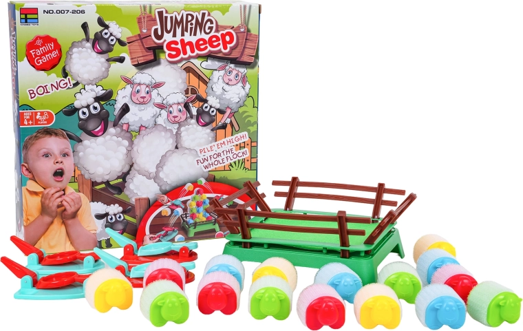 Zabavna družinska spretnostna igra za otroke od 4 let, v kateri se igralci trudijo spraviti svoje ovčke v ogrado s pomočjo malih izstreljevalnikov. Igra razvija fino motoriko, koordinacijo oko–roka in hitre reflekse. Barvni deli z mehko površino so izdelani iz varnih materialov, ovčke pa je zaradi ježka mogoče zlagati v zabavne stolpiče.
