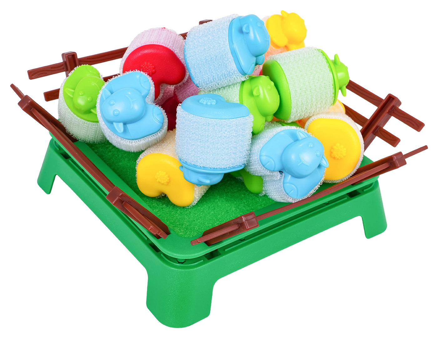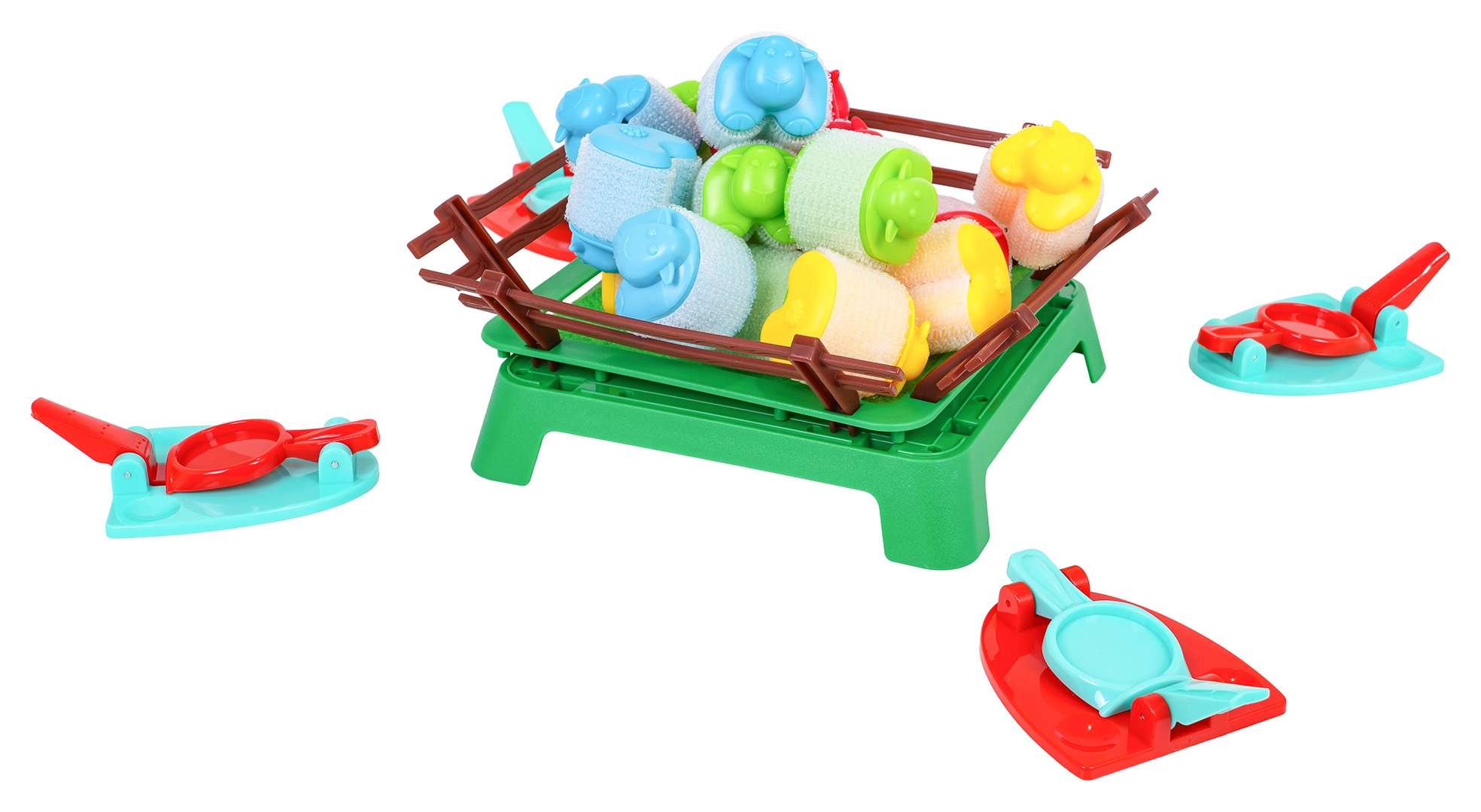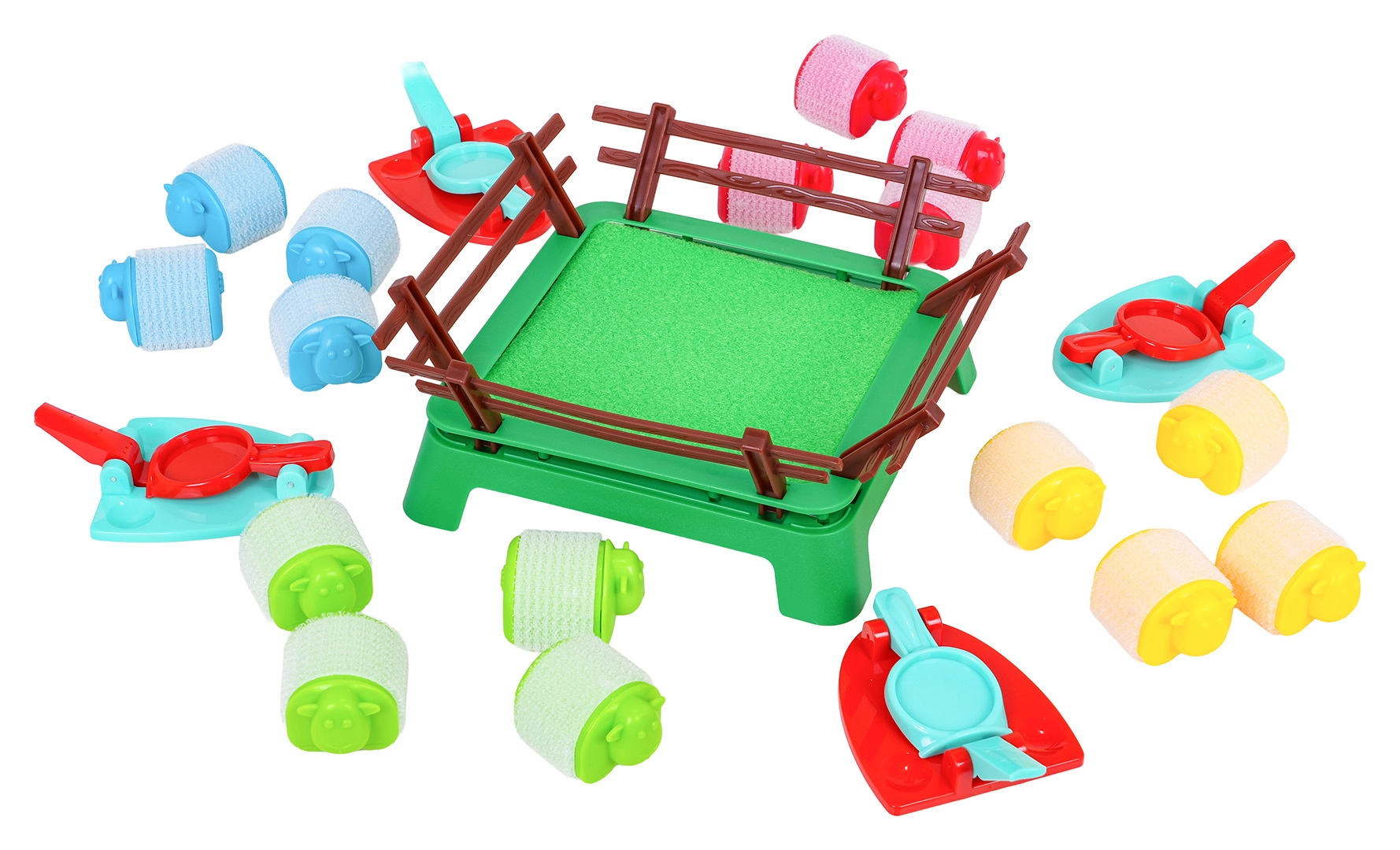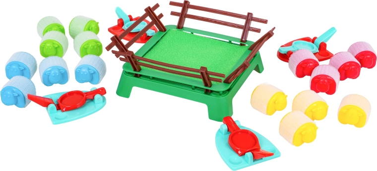 - 16 barvnih ovčk, 4 izstreljevalniki, ograda, navodila (EN)