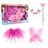 Ta čarobni komplet vsakega otroka od 3. leta spremeni v malo princesko in metulja hkrati. Zaradi lahkih kril z elastičnimi naramnicami odlično držijo in ne padajo niti pri razigrani igri. Tylasto krilce z udobnim elastičnim pasom se zlahka obleče in čudovito vrti.