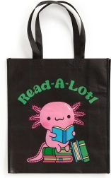 - Izviren dizajn z motivom aksolotla, ki bere knjige