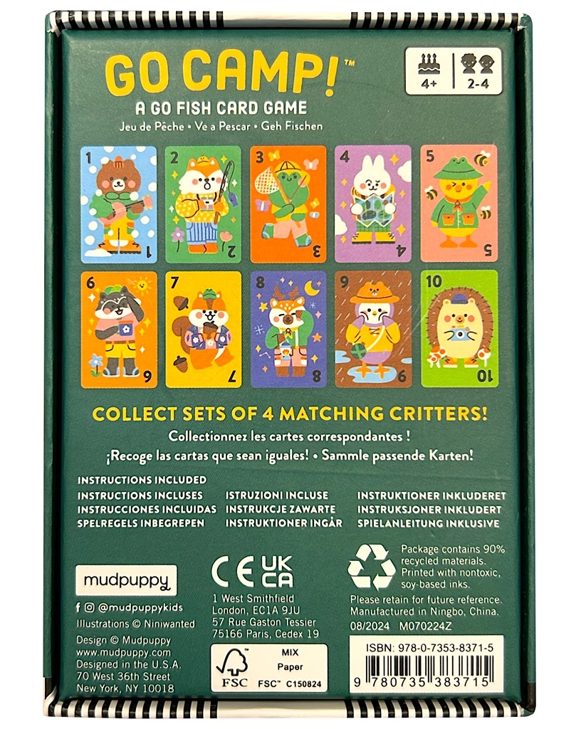 Odkrijte zabavo na temo kampiranja s kartaško igro Mudpuppy Gremo kampirat. Zaradi preprostih pravil in čudovitih ilustracij bo navdušila tako otroke kot odrasle. Igra je kompaktna, zato je kot nalašč za v nahrbtnik na izlete ali za deževne dni doma.