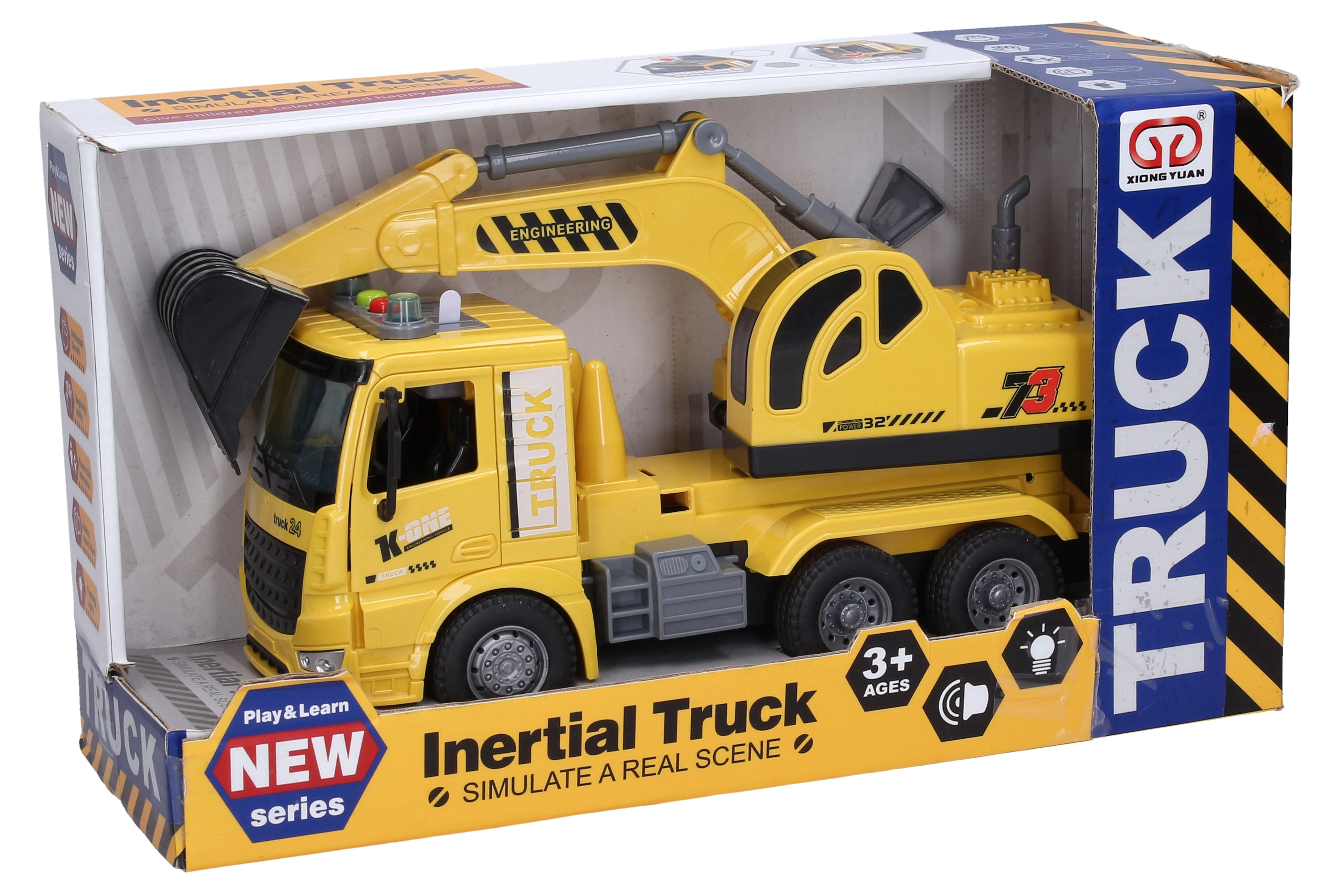 Ta podrobno izdelan gradbeni bager dolžine 28 cm je idealna igrača za vse male ljubitelje gradbenih strojev. Vztrajniški pogon zagotavlja gladko vožnjo, medtem ko gumbi na strehi aktivirajo realistične zvoke motorja, kopanja, vzvratne vožnje in hupanja, dopolnjene s svetlobnimi učinki.