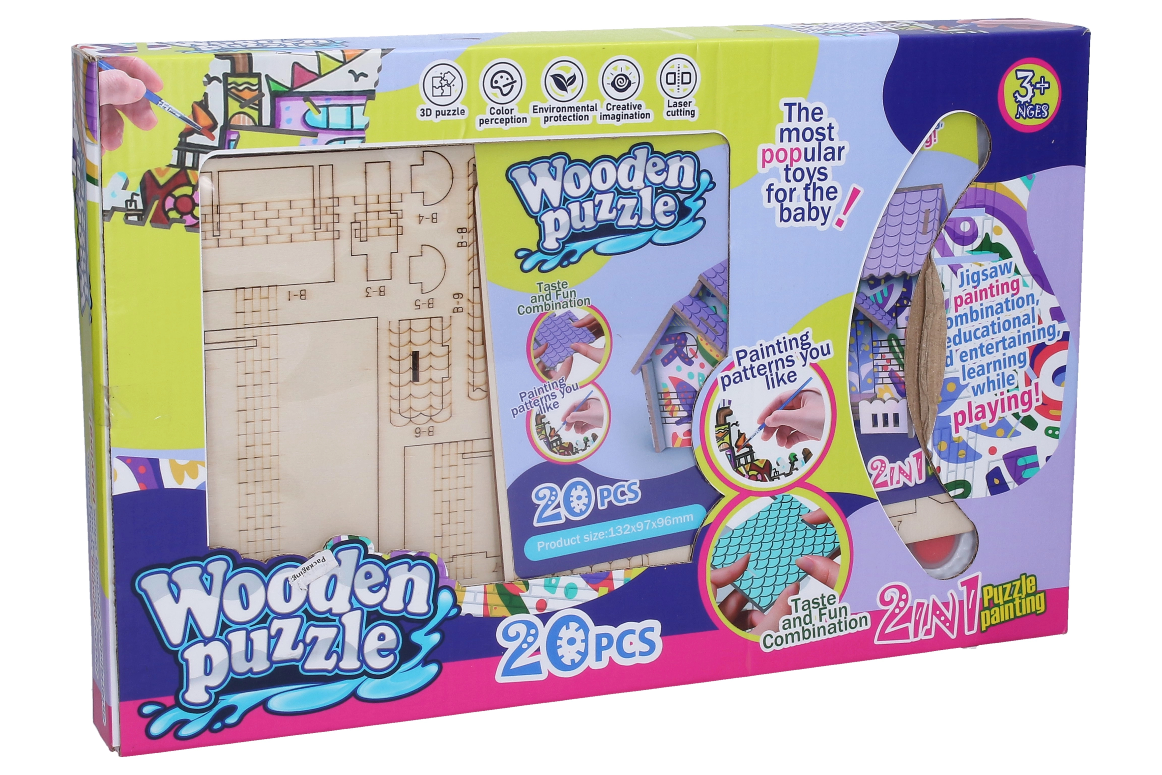 Odkrijte ustvarjalni svet 3D lesenih sestavljank. Set vsebuje vse, kar potrebujete za sestavo in pobarvanje prikupne hiške. Zaradi natančno izrezanih delov je sestavljanje zabavno in enostavno, barvanje pa končnemu izdelku doda edinstven videz.