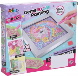 Postopek je preprost: odstranite zaščitno folijo s predloge, konico priloženega peresnika potopite v vosek, poberite kamenček in ga namestite na ustrezno mesto na sliki. Po končanju vstavite sliko v priloženi okvir in razstavite svoje lastno bleščeče umetniško delo.