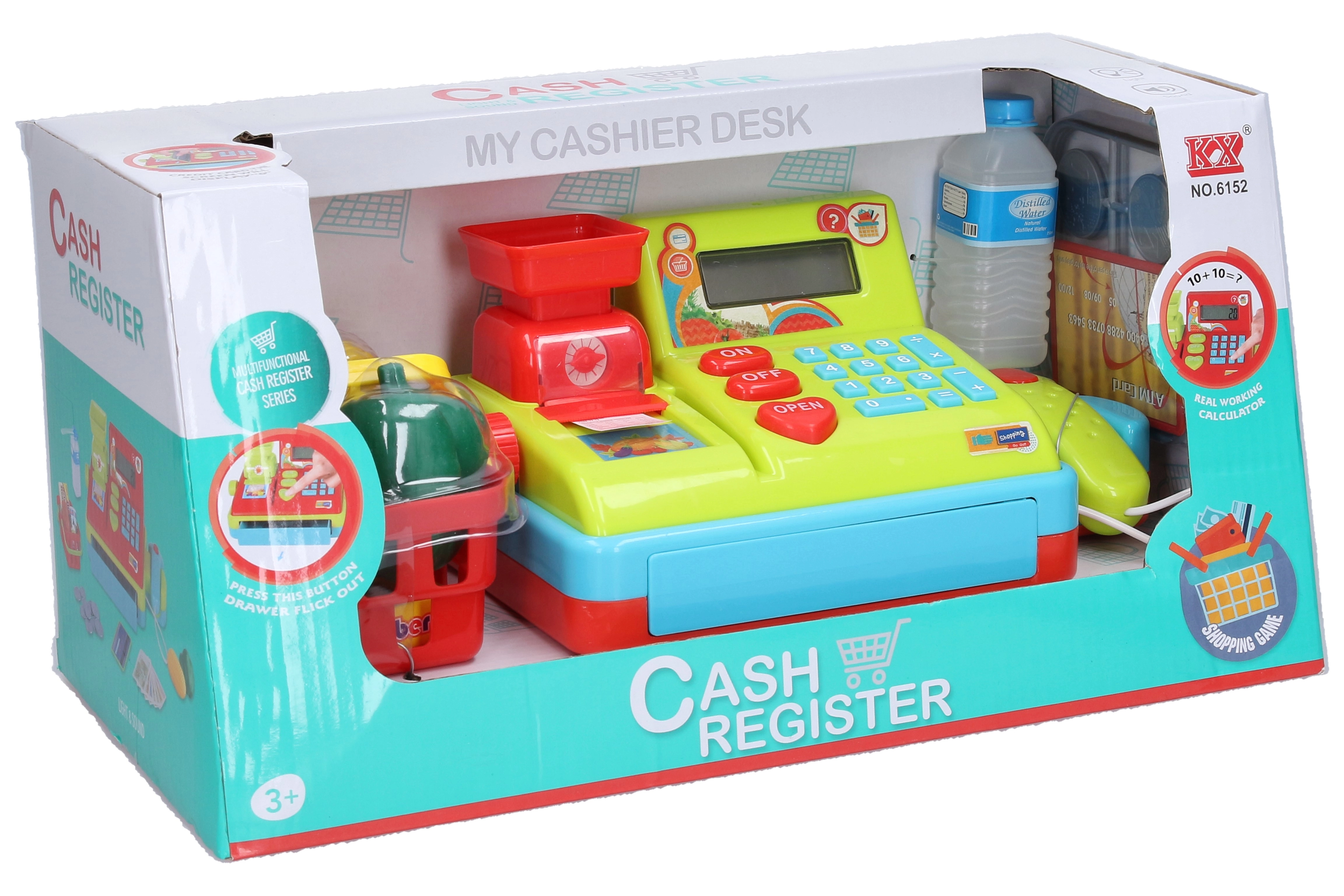 Realistična otroška blagajna na igriv način predstavi nakupovanje in računanje. Zahvaljujoč delujočemu kalkulatorju, svetlobnim in zvočnim učinkom ter bogatim dodatkom bodo otroci uživali ure zabave.