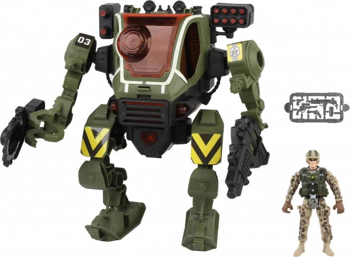 Del paketa je podrobno izdelana figurica pilota (11 cm), ki jo lahko namestite k robotu za še bolj pristne igralne scenarije. Robot meri 25 × 11 × 26 cm in je pripravljen za takojšnjo uporabo – 2× AG13 bateriji sta priloženi.
