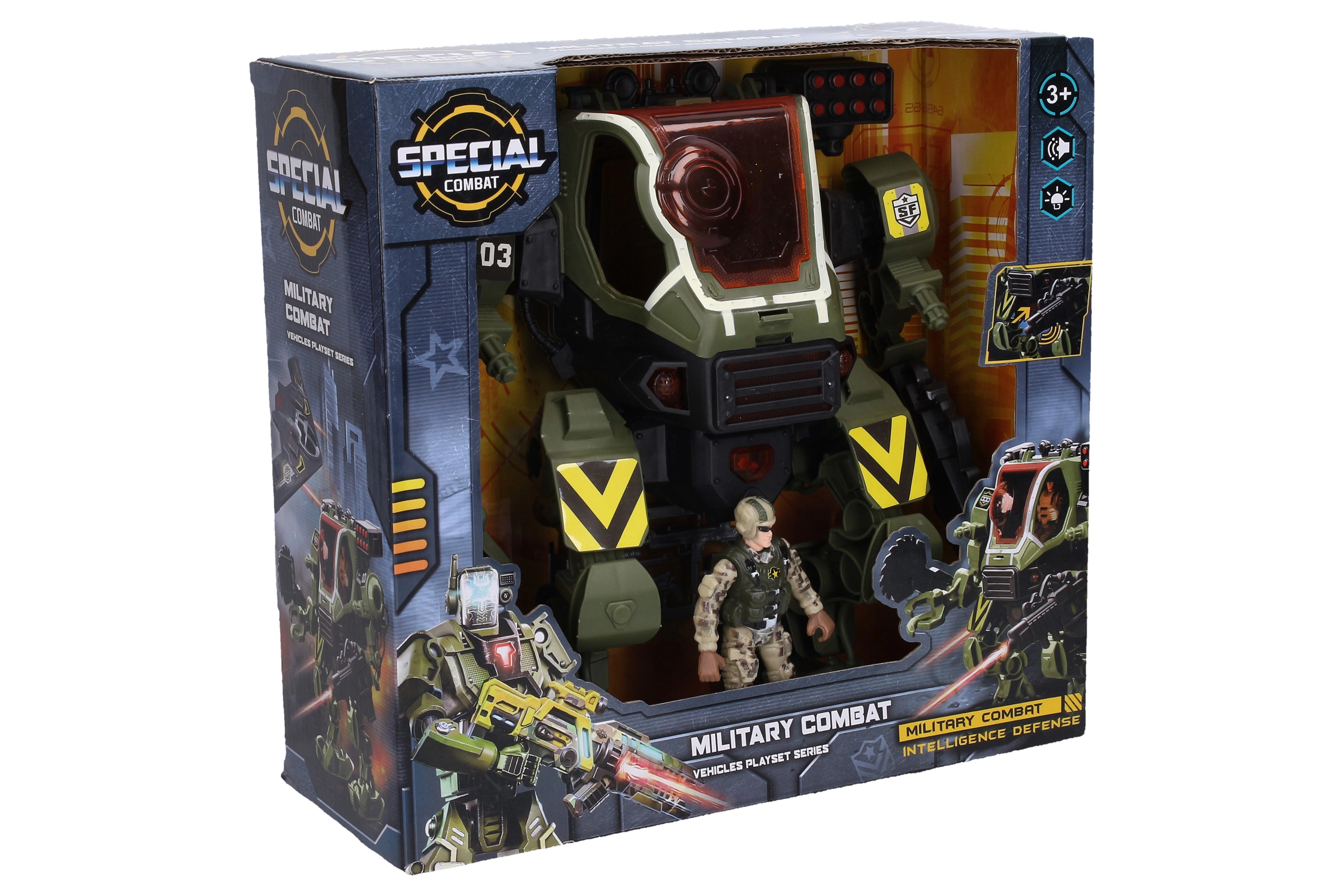 Odkrijte svet futurističnih bitk z bojnim meha robotom, ki bo navdušil male in velike ljubitelje akcijskih igrač. Realistični svetlobni in zvočni učinki ustvarjajo dinamično vzdušje ter spodbujajo ustvarjalno igro. Zahvaljujoč preprostemu upravljanju z enim gumbom otroci hitro preklapljajo med različnimi zvočnimi načini.