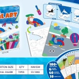 Kreativni komplet za otroke od 4. leta, ki razvija fino motoriko in domišljijo. Vsebuje penaste nalepke, predloge z ozadji, bleščeč papir in lopatko za enostavno odstranjevanje zaščitne plasti – idealno kot darilo za male ustvarjalce.