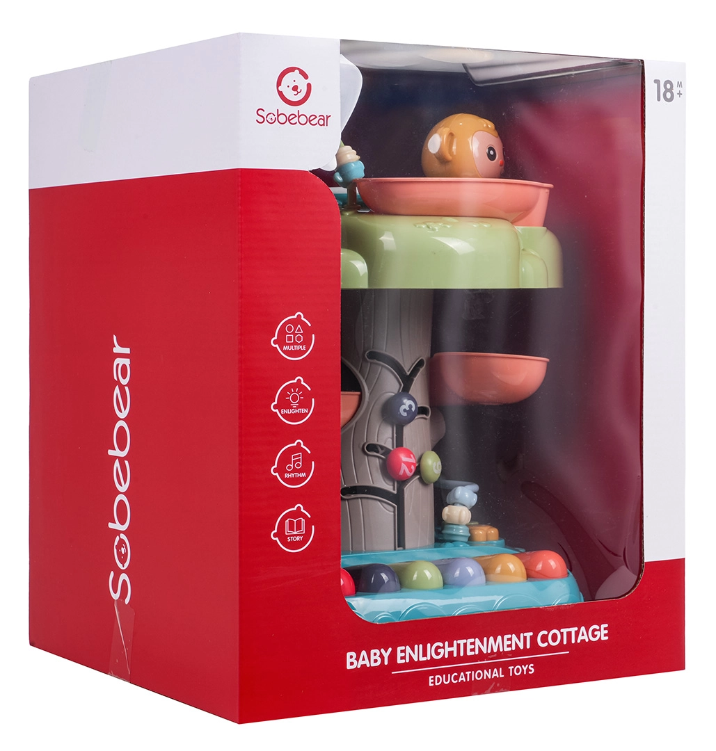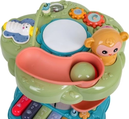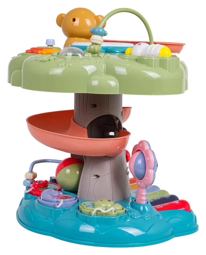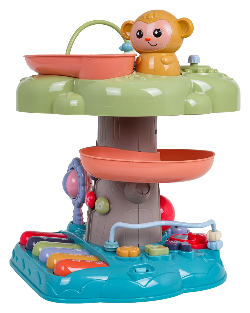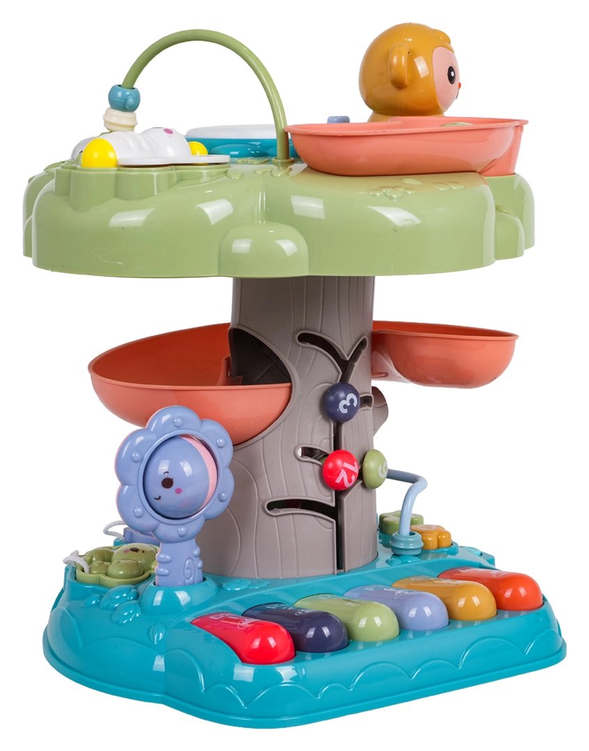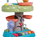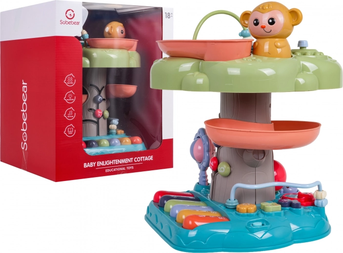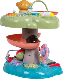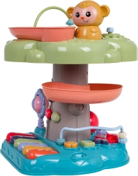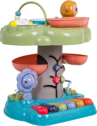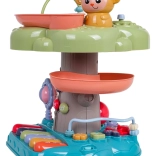 Interaktivno drevesce je idealna izobraževalna igrača za najmlajše. Otroke pritegne osvetljen glasbeni bobenček na vrhu, klavirček s štirimi načini (številke, melodije, živali in njihovi zvoki, toni) ter spiralna steza za žogice, po kateri se kroglice z veseljem kotálijo navzdol. Barviti elementi, lučke in melodije podpirajo čutni razvoj ter učenje vzroka in posledice.