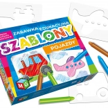 Odkrijte zabaven način, kako otroke naučiti risati zahtevnejše oblike in vozila. Komplet šablon omogoča preprosto prerisovanje zunanjih in notranjih kontur, zato otroci hitro ustvarijo lepe risbe in jih nato pobarvajo s priloženimi barvicami. Risanje tako postane igra, ki razvija kreativnost, koordinacijo roke in očesa ter potrpežljivost.