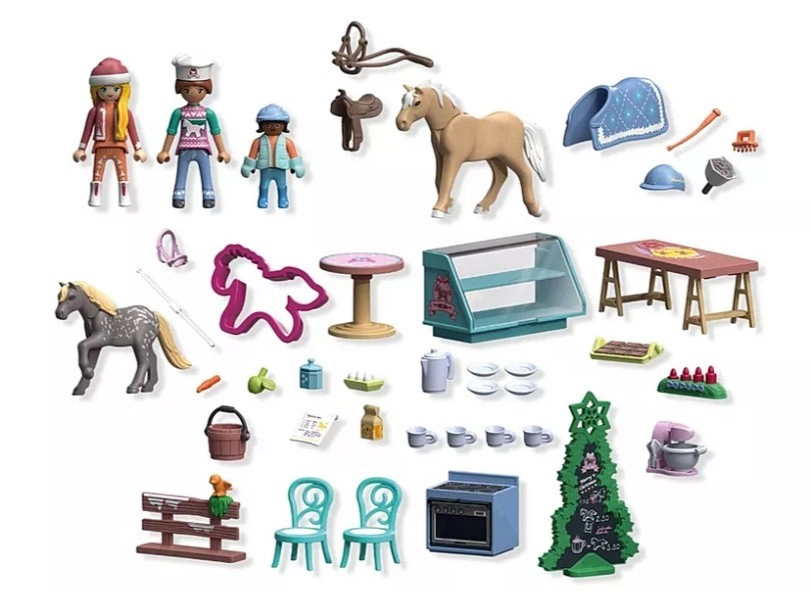 Odkrijte svet PLAYMOBIL Horses of Waterfall, kjer se božično vzdušje sreča s čarom jezdeškega življenja. V kavarni Ellie si otroci uživajo v peki medenjakov in piškotov, okraševanju notranjosti in z veseljem postrežejo dobrote. Odpirajoča se pečica in steklena vitrina dodata igri pristnost, medtem ko ljubljenčki in konjske priboljške poudarijo temo hleva.