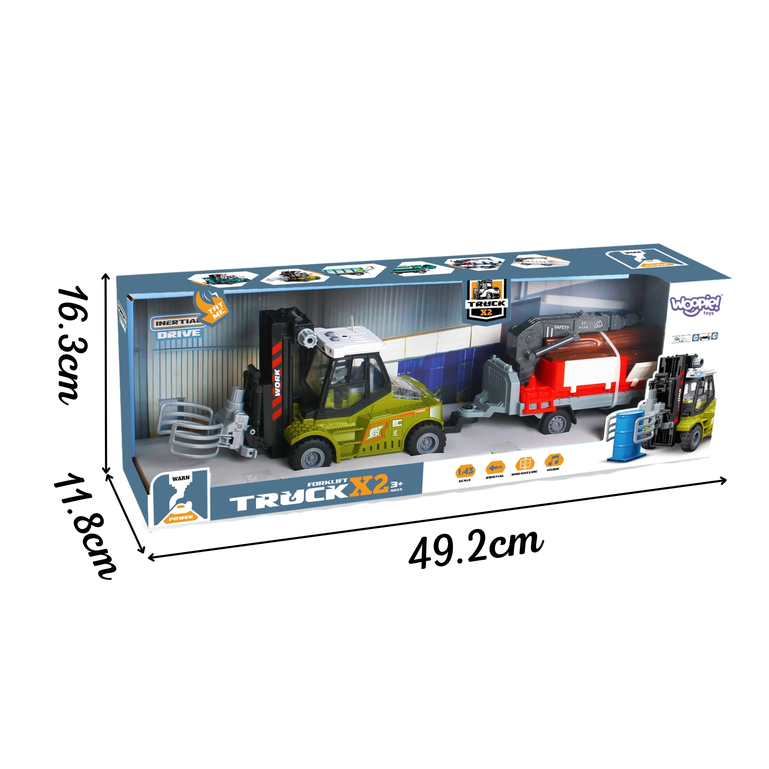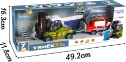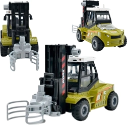 Realistični model v merilu 1:43 bo razveselil male navdušence nad gradbenimi in prevoznimi stroji. Viličar ima vztrajnostni pogon – dovolj je, da ga potisnete in zapelje naprej. Premični krak s kleščnim oprijemom omogoča dvigovanje in prenašanje lesenih hlodov, medtem ko prikolica z odpirajočimi se stranicami olajša nakladanje in razkladanje.