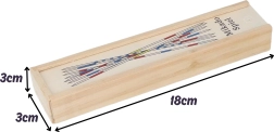 - Vsebina pakiranja: komplet lesenih paličic z barvnimi oznakami, navodila s pravili in možnostmi točkovanja, shranjevalna škatlica.
