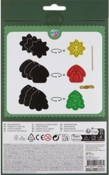 Praskanka MOXY z božičnimi motivi prinaša preprost in vesel način, kako izdelati lastne dekoracije. Vsak od devetih priveskov ima črno zgornjo plast, pod katero se skrivajo pisane barve. Dovolj je uporabiti priloženo strgalo in postopoma izrisati like – rezultat so edinstveni božični okraski, ki razveselijo majhne in velike.