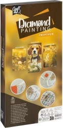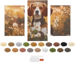 Ta ustvarjalni komplet za slikanje z diamanti vsebuje vse, kar potrebuješ za izdelavo impresivnega triptiha s pasjim motivom. Vsako platno ima predtiskan vzorec z lepilno plastjo, na katero preprosto nameščaš kamenčke po priloženi legendi. Končna slika se čudovito blešči in izstopa v dnevni sobi, spalnici ali otroški sobi.