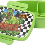 Praktična škatla za prigrizke z motivom dinozavrov za otroke v šolo, na igrišče in na izlete. Izdelana iz odpornega materiala, zlahka prenese vsakodnevno uporabo in naključne padce. Privlačen dekor na pokrovu bodo otroci oboževali. Primerna ne le za hrano, temveč tudi za shranjevanje drobnih igrač in zakladkov.