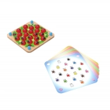 To netradicionalno multi-spominsko pexeso združuje priljubljeno spominsko igro s 3D elementi. Eno od šestih dvostranskih predlog vstavite med dve leseni plošči, slike prekrijete s pikapolonicami in igra se lahko začne. Otroci na zabaven in naraven način urijo spomin, logično razmišljanje, koordinacijo roka–oko in besedni zaklad.