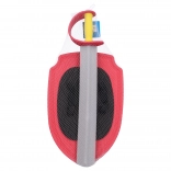 Zabaven komplet za male viteze: pena meč in ščit v rdeči barvi za varne dvoboje in ustvarjalno igro. Lahek, mehak in varen material je idealen za otroke, meč dolžine 57 cm in ščit velikosti 27,5 × 41,5 cm odlično ležita v roki in spodbujata otroško domišljijo.