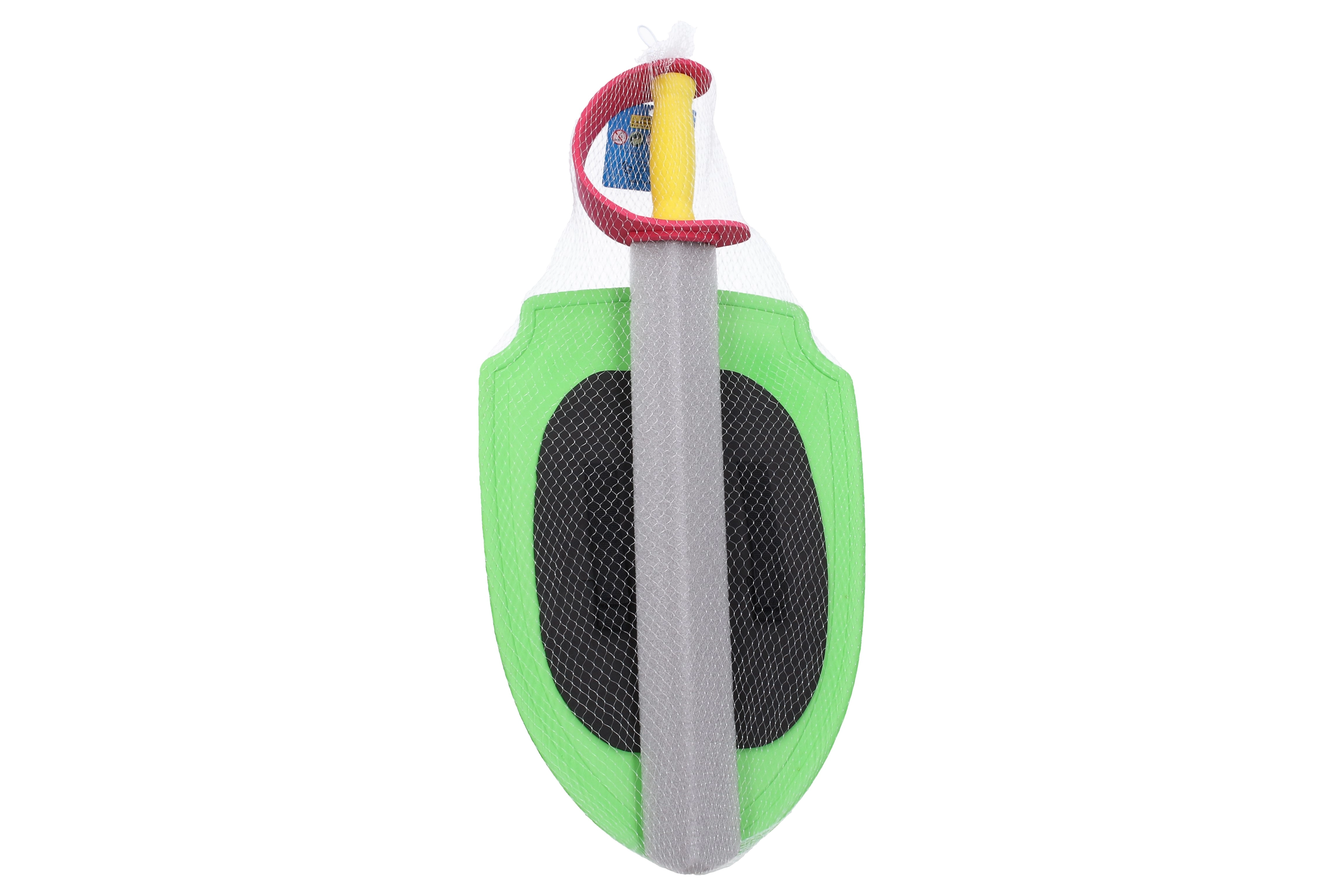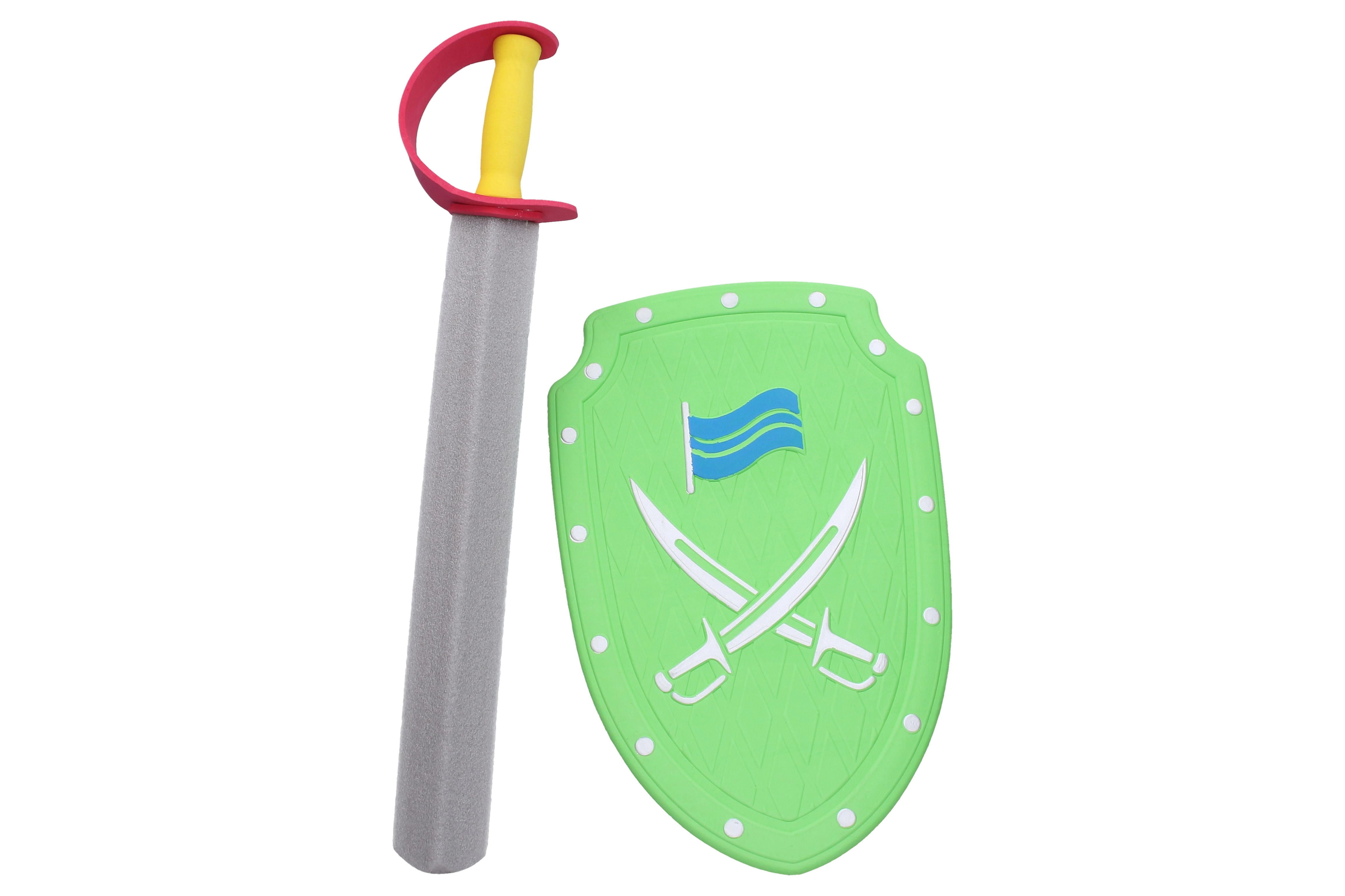 Meč z dolžino 57 cm je dovolj dolg za napete dvoboje, a hkrati lahek za enostavno upravljanje. Ščit z merami 27,5 × 41,5 cm otrokom pomaga uriti spretnost in koordinacijo.