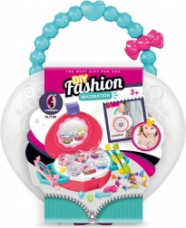 Kreativni komplet za male oblikovalke in ustvarjalne otroke, ki omogoča preprosto izdelavo lastnih zapestnic in dodatkov. Set v praktični torbici vsebuje perlice, vrvice, lasne sponke in prstančke, s katerimi si lahko otroci ustvarijo edinstven nakit. Odlično za fino motoriko, razvoj ustvarjalnosti in zabavo na poti.