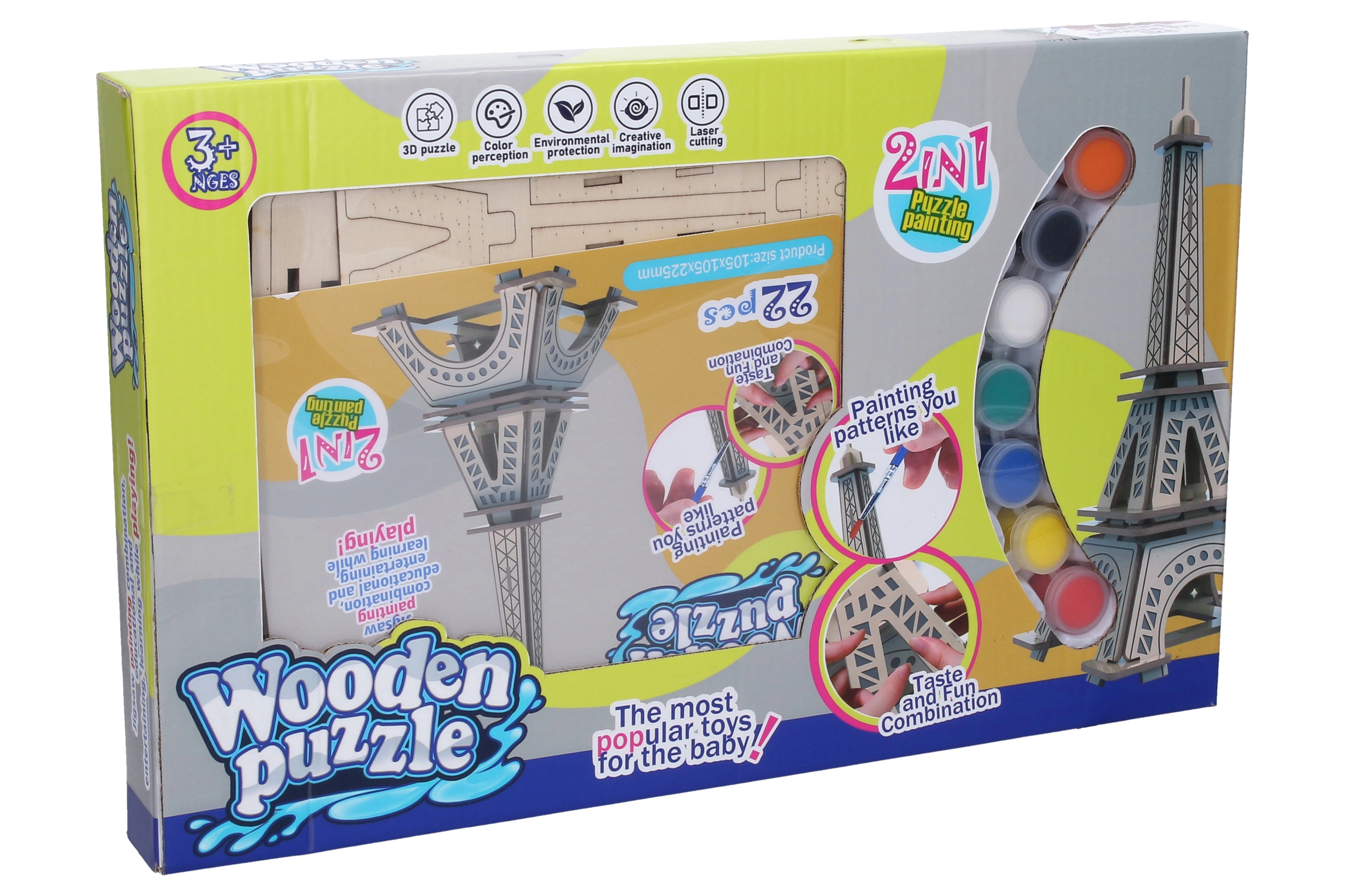 Odkrijte čar Pariza z lesenim 3D modelom STOLPA EIFFEL, ki ga lahko po sestavi pobarvate po svoji domišljiji. V paketu najdete vse potrebno: natančno izrezane dele, komplet barv, čopič in slikovni priročnik za enostavno in hitro sestavljanje.