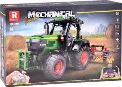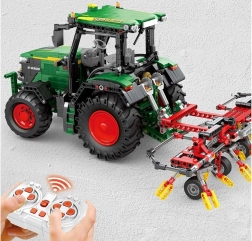 Ta tehnični komplet bo navdušil ljubitelje strojev, mehanike in modelov. Zelena kabina, masivne pnevmatike z izrazitim profilom in vlečene brane verodostojno posnemajo sodoben kmetijski traktor. Z daljinskim upravljanjem in motorji boste uživali v gladki vožnji in interaktivnem upravljanju.