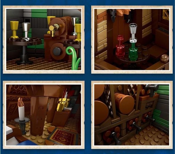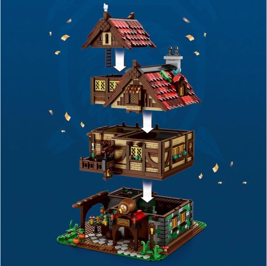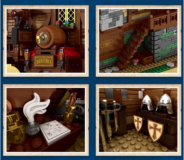 Ta velika srednjeveška koča/krčma je idealen kraj za viteze in plemstvo po zahtevnih pohodih. Čaka vas bogato izdelana notranjost in zunanjost – od soda z »točenim pivom«, prek miz s čašami do orožarne z meči in ščiti. Z 2868 kosi boste zgradili podroben objekt z več ravnmi in okrasi, ki spodbujajo domišljijo in pripovedovanje zgodb.