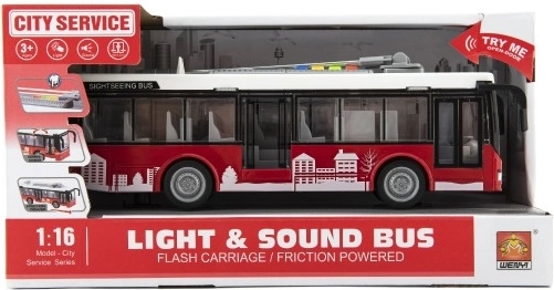 Odkrijte odličen mestni avtobus iz serije City Service, ki navduši z realistično izdelavo, rdečim dizajnom in enostavnim upravljanjem. Zahvaljujoč vztrajniku je dovolj, da avtobus potisnete in zapelje naprej, medtem ko luči in zvoki igri dodajo pristno vzdušje mestnega prometa.