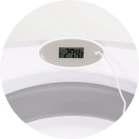 Vgrajeni digitalni termometer omogoča hitro preverjanje idealne temperature za občutljivo otroško kožo.