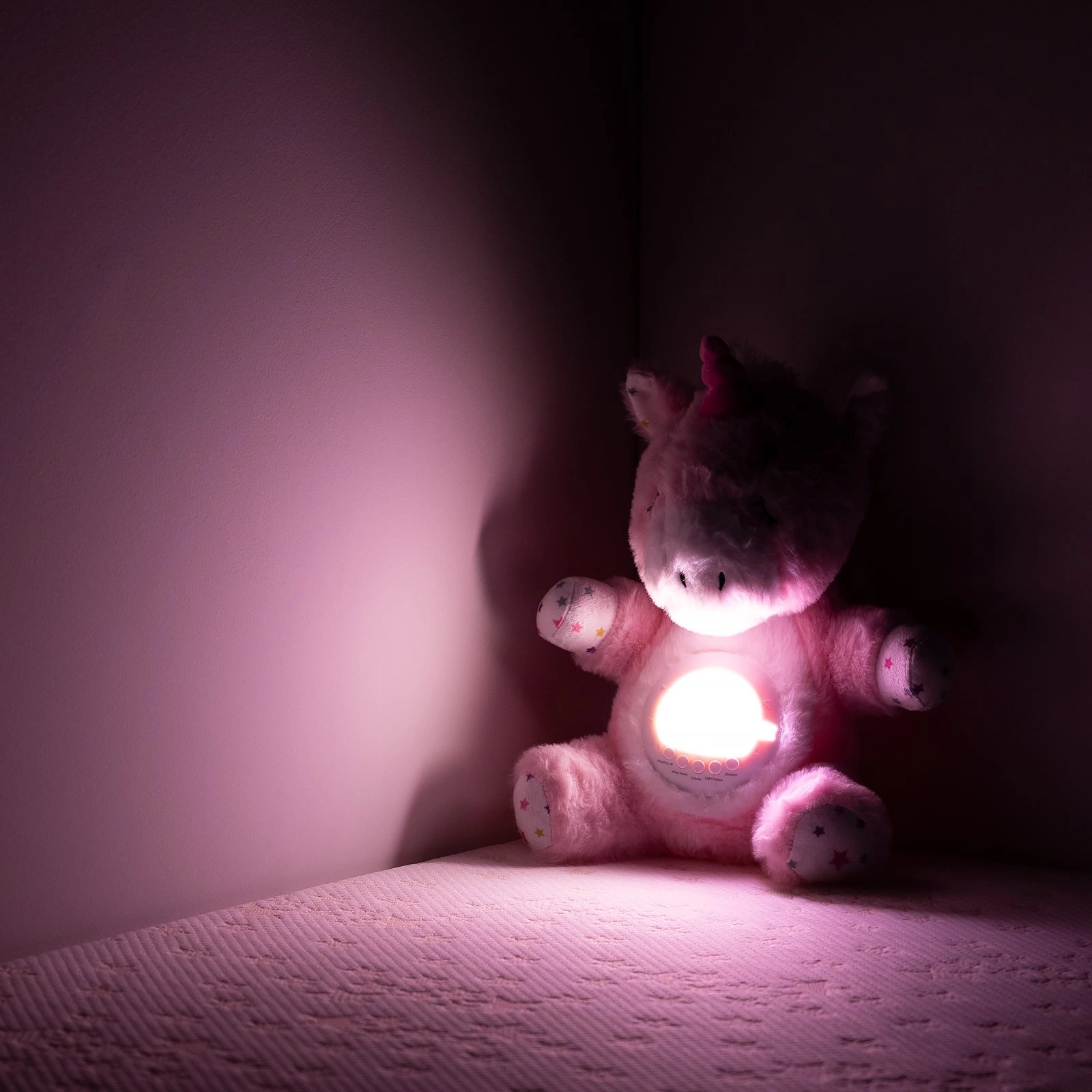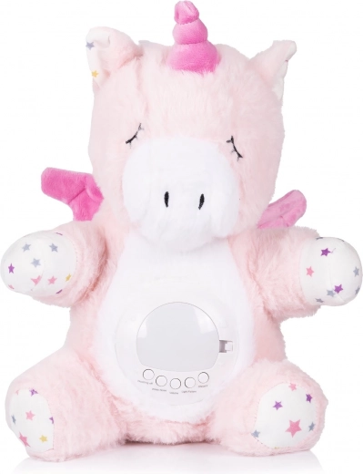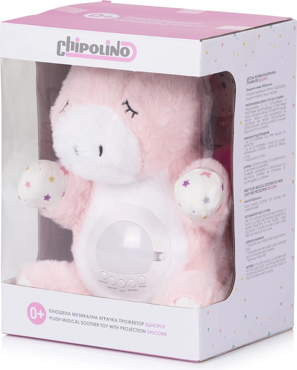 Plišasti samorog CHIPOLINO je mehak spremljevalec za posteljico, ki vašega malčka pomiri z nežno svetlobo in naravnimi zvoki. Zaradi kombinacije projekcije zvezdnega neba, nočne svetilke in uspavank ustvari prijetno vzdušje za nemoten spanec.