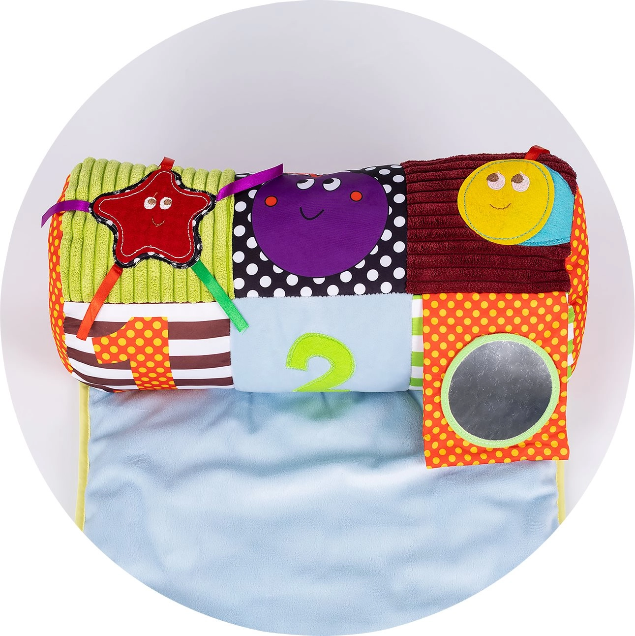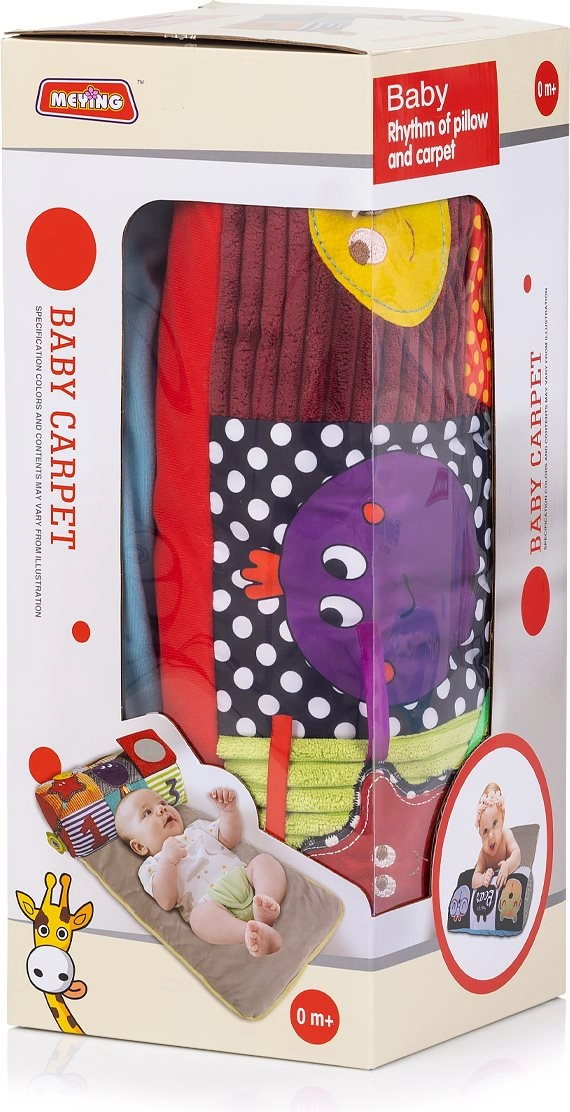Kontrastne barve, teksture in drobne igračke podpirajo razvoj vida, dotika in koordinacije. Zaradi nizke teže je komplet idealen za doma in na poti – vedno pripravljen za varno igro in sprostitev.