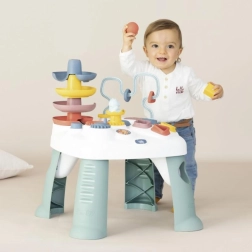 Odkrijte večnamensko igralno mizo za otroke od 12 mesecev, ki razvija fino motoriko, koordinacijo oko–roka in logično mišljenje. Zahvaljujoč barvitim interaktivnim elementom, igri za prepoznavanje oblik in zabavni kroglasti stezi prinaša dolge ure kreativne igre stoje ali sede.