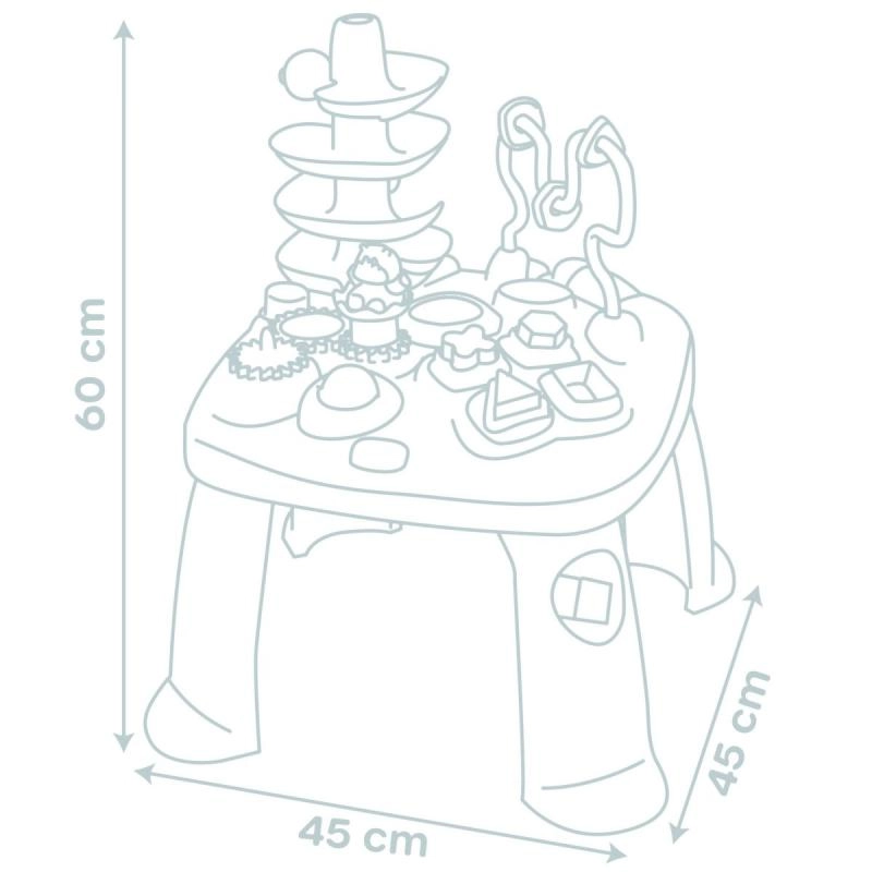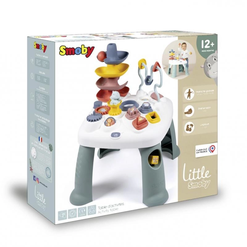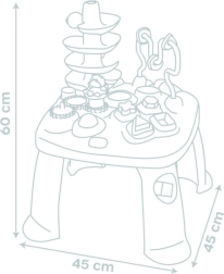 Igralna miza LITTLE SMOBY Activity je zasnovana za radovedne malčke od 12 mesecev. Trdna konstrukcija in stabilne noge podpirajo varno igro, medtem ko raznolike aktivnosti – od vstavljanja oblik do spuščanja kroglic po stolpu – spodbujajo čute in izboljšujejo zbranost. Idealna za otroško sobo ali igralnico.