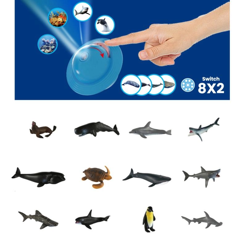 Komplet združuje svetlobo, barve in resnične modele živalic, zaradi česar otroci zlahka povežejo podobo z resničnostjo. Projektor z dvema kolutoma projicira na steno ali strop morske motive, ki jih je otrokom prijetno opazovati in jih navdihujejo za pripovedovanje zgodb.