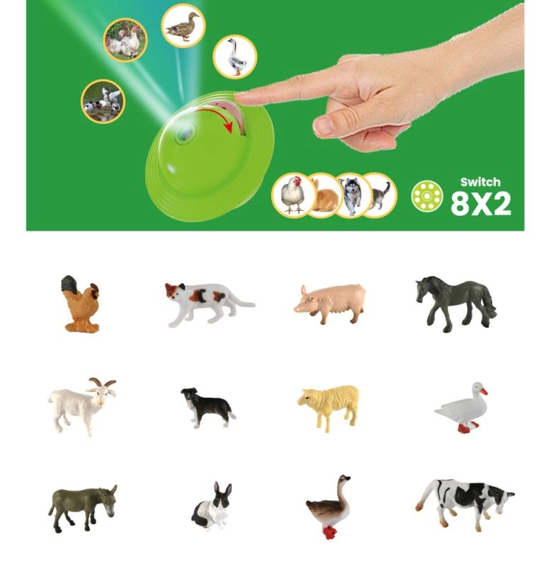 Set združuje svetlobno projekcijo z otipno izkušnjo, da si otroci na zabaven način osvojijo prepoznavanje živali in barv. Preprosto upravljanje projektorja in realistične figurice spodbujajo aktivno igro in učenje.