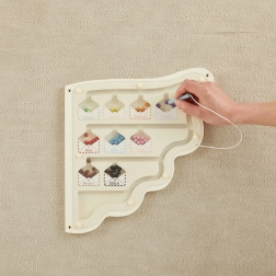 Deska je zasnovana za varno vsakodnevno interakcijo – gladki robovi, stabilna namestitev na steno in premišljena razporeditev aktivnosti. Otroci vadijo potrpežljivost, zbranost in koordinacijo gibov ter naravno razvijajo veščine, pomembne za predšolsko obdobje.