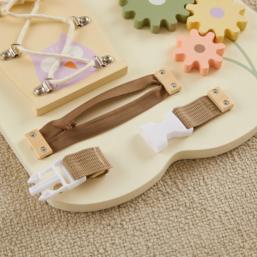 Velika stenska motorična deska v obliki sove znamke 2Kids Toys otrokom ponuja več kot 10 raznolikih aktivnosti v nežnih pastelnih barvah. Spodbuja fino motoriko, logično razmišljanje, čutno zaznavanje in koordinacijo oko–roka. Zaradi kakovostne izdelave iz lesa, plastike in kovine je varna, trpežna in odlična za otroško sobo ali igralnico.