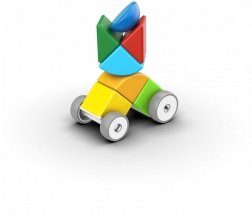 Posebej zasnovani magnetni elementi se zlahka oprimejo z različnih strani. Otroci brez truda zgradijo avtomobilček in druge oblike ter krepijo fino motoriko.