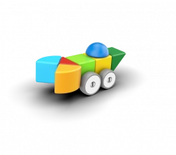 Dve podvozji s štirimi kolesi spremenita barvite bloke v vozilo na kolesih. Le zgradite in se odpeljite – igra dobi novo dimenzijo gibanja in domišljije.