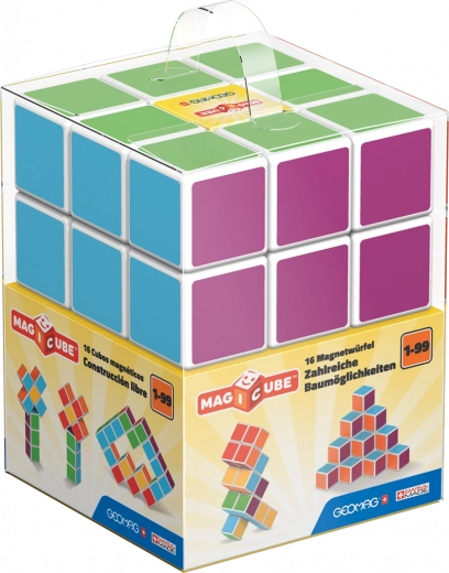 Odkrijte čarobnost magnetnega sestavljanja z Geomag Magicube. Inovativen sistem omogoča, da se kocke privlačijo z vseh strani, zato otroci zlahka zgradijo stolpe, oblike in enostavne vzorce. Raznobarvne strani spodbujajo vizualno zaznavanje in učenje barv, manipulacija s kockami pa razvija koordinacijo oko–roka.