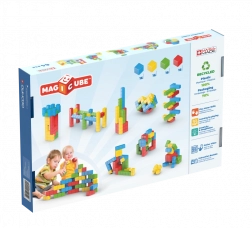 Ta ustvarjalni set vsebuje 64 kosov v štirih živahnih barvah, je izdelan v Švici iz 100% reciklirane plastike in je zasnovan za varno igro že od 1. leta. Odličen za prve gradbene komplete, razvoj koordinacije oko–roka ter učenje barv in prostorskega zaznavanja.