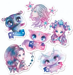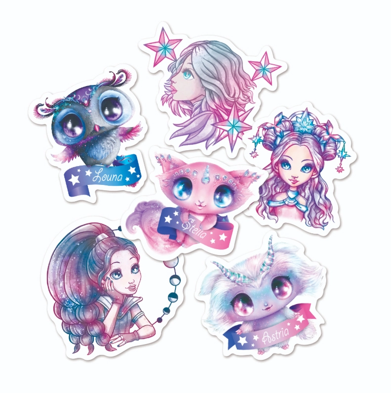Popestrite svoje stvari z originalnimi motivi NEBULOUS STARS. Nalepke iz trpežnega vinila imajo bleščečo površino, natančne izreze in čudovite ilustracije deklet ter ljubkih živali z star & fantasy elementi. Zaradi vodoodpornosti se dobro držijo na steklenicah za pijačo, beležkah in elektroniki ter prenesejo običajno vlago.