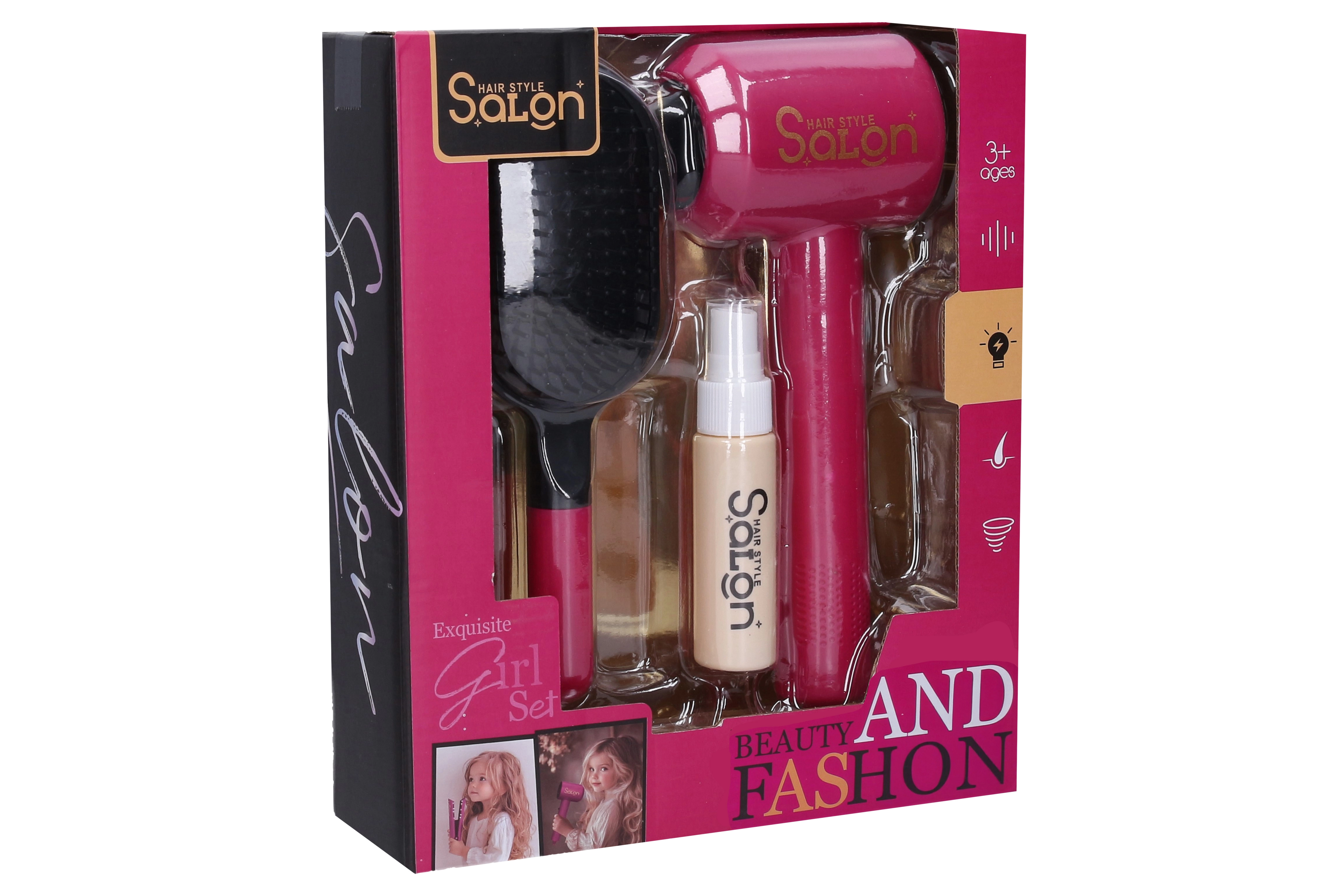 Ta prikupen kozmetični set je odlična izbira za otroke, ki imajo radi igro frizerja. Funkcionalni sušilnik na baterije doda igri pristnost, krtača in sprej pa omogočata nego pričesk za punčke in prijateljice. Zahvaljujoč kompaktni velikosti 21 cm je set udoben za držanje in ga je enostavno prenašati.