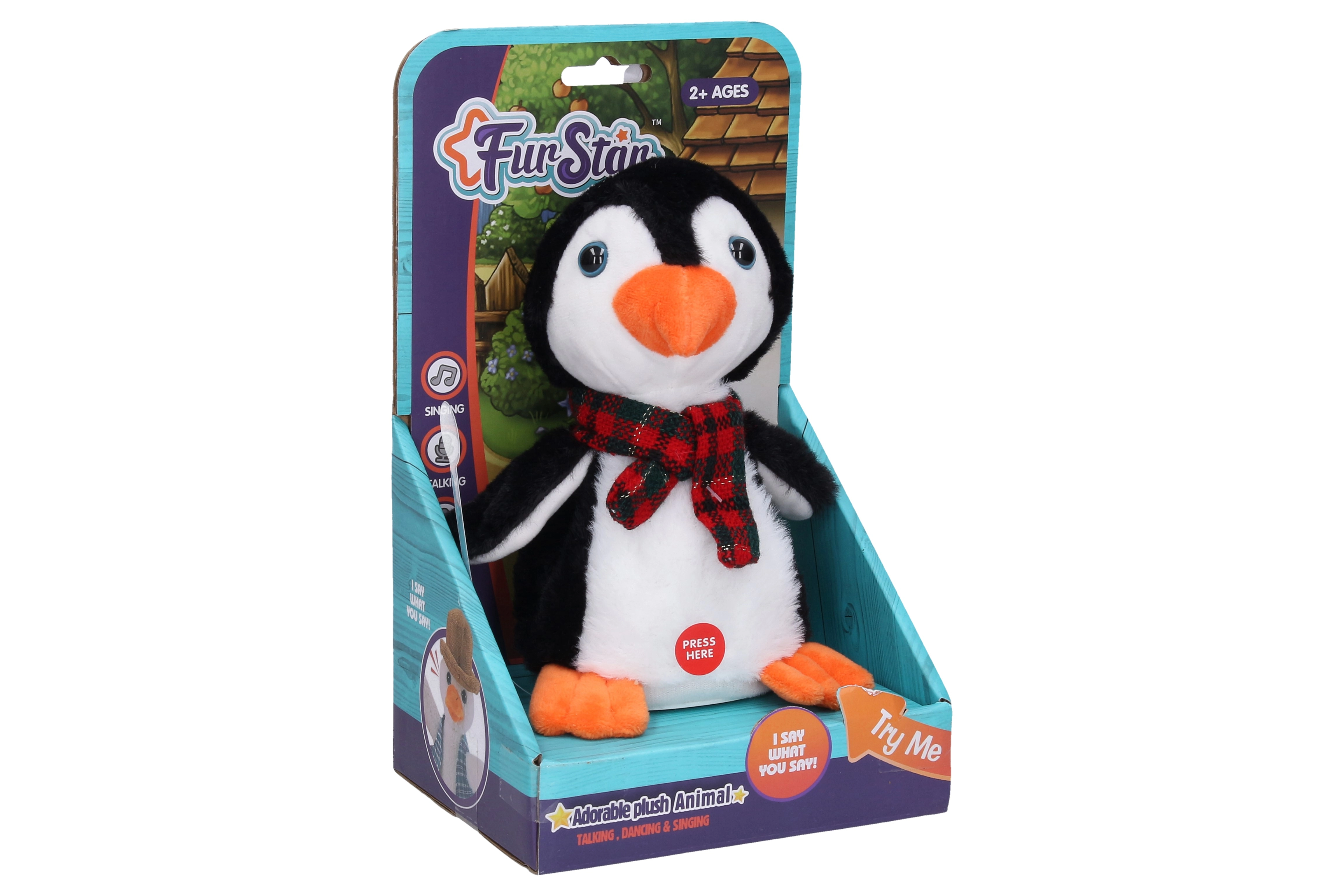Ljubek interaktivni pingvin, ki ponavlja, kar poveste, hkrati pa pleše in poje. Ponuja zabavne zvočne učinke, preprosto upravljanje z gumbom na trebuščku in stikalo OFF/TRY ME/PLAY. Idealno darilo za otroke, ki imajo radi glasbo in smeh.