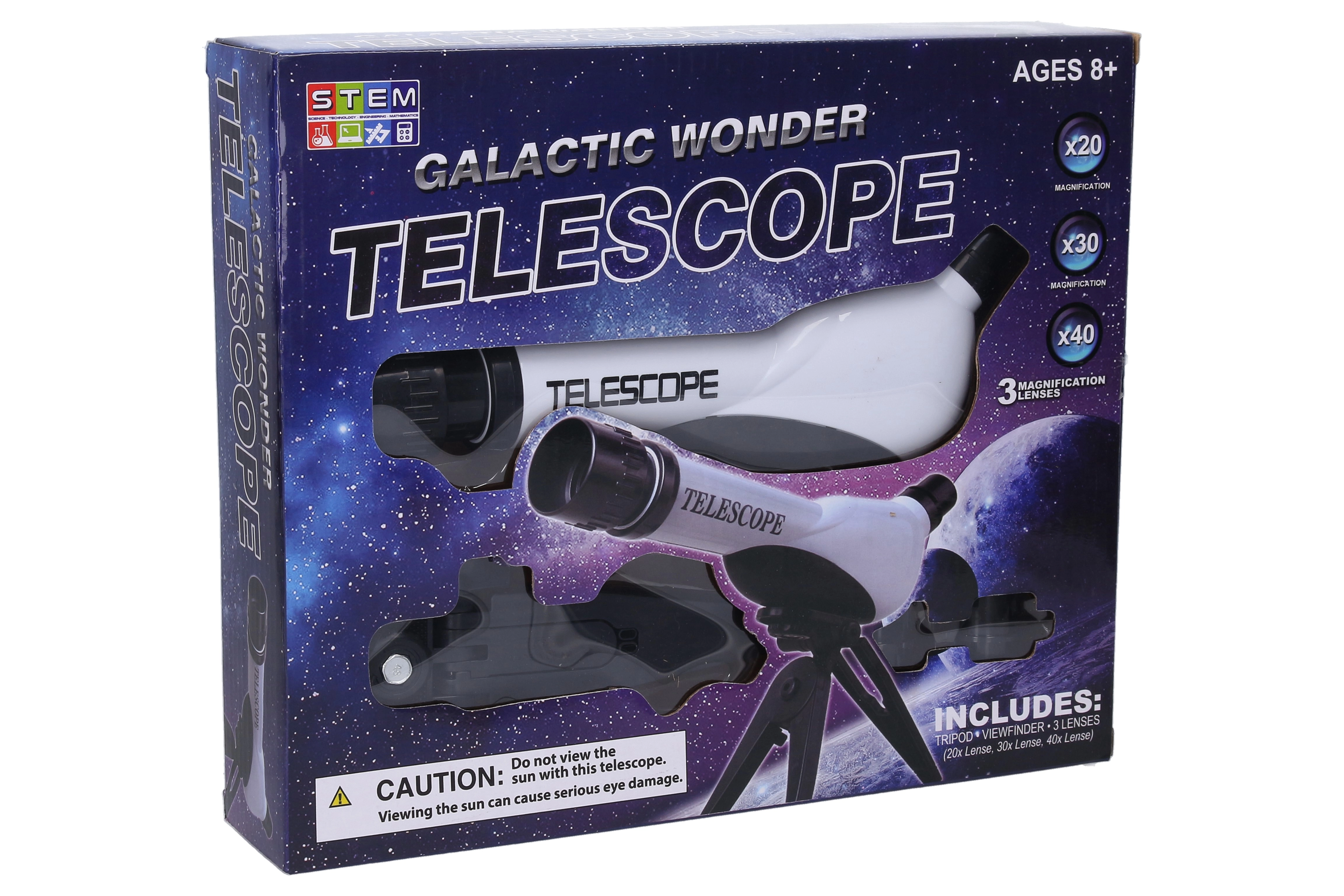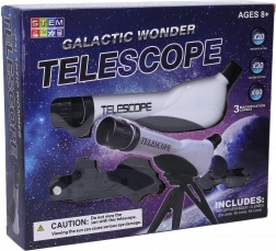 Astronomski teleskop je idealna izbira za prve korake v astronomiji. Zahvaljujoč zamenljivim lečam s tremi stopnjami povečave boste zlahka približali Luno, svetle planete in izrazite zvezdne kopice. Stabilno stojalo zagotavlja mirno sliko, medtem ko intuitivno upravljanje ostrenja z vrtenjem objektiva obvladajo tudi začetniki.