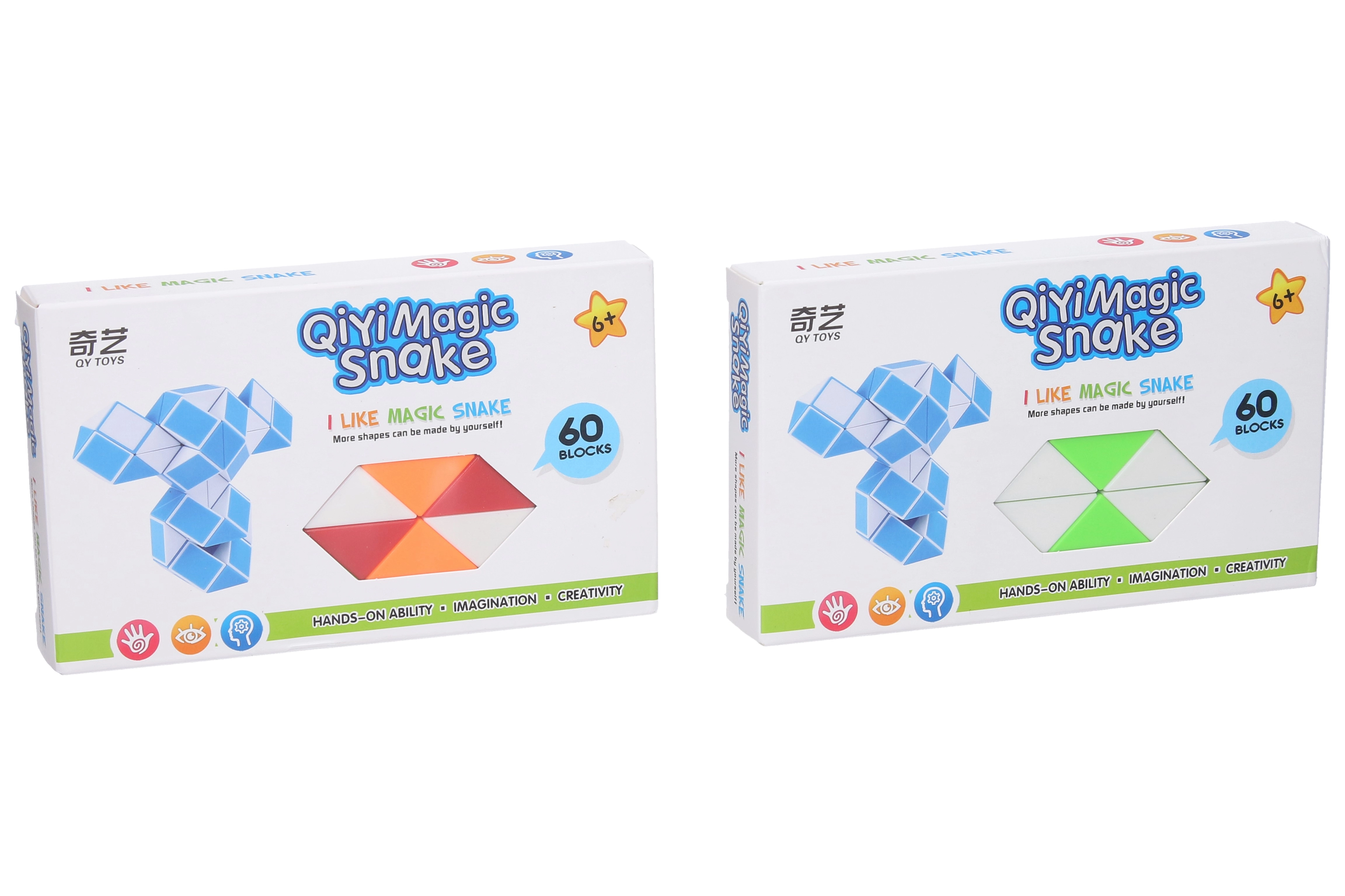 Uganka kača je klasična sestavljanka, s katero z enostavnim vrtenjem segmentov ustvarite različne 2D in 3D oblike. Priložen je slikovni priročnik, ki prikazuje, kako sestaviti osnovne in napredne oblike. Odlično za otroke in odrasle – zabava na poti, doma ali v šoli.